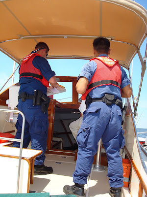 An Anne Arundel County Police Officer was first on the scene and stayed with us to ensure our safety(?). Shortly thereafter, the Coast Guard arrived and actually boarded our boat. This was serious stuff. Fortunately, Mr. and Mrs. C have impeccable records and were not smuggling anything. These guys are the real deal- check out those guns!